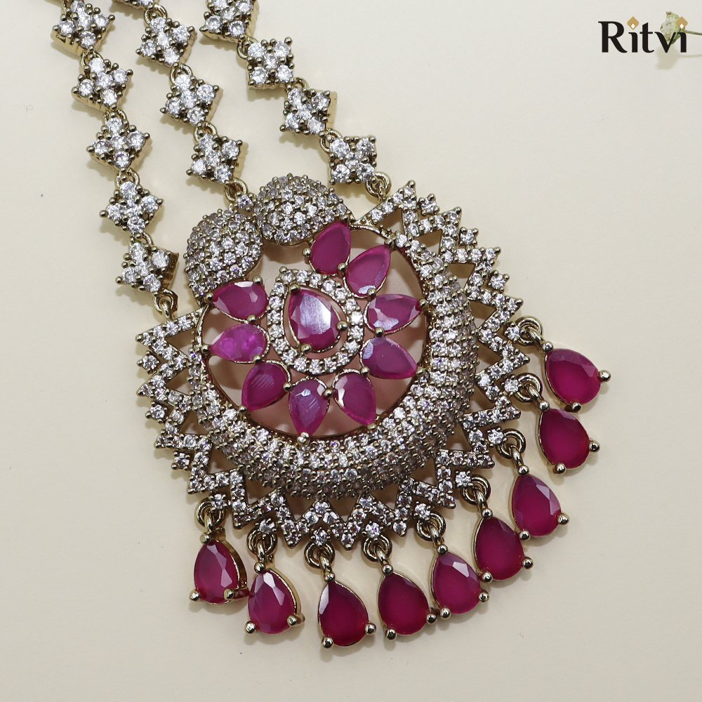 This unique bridal passa is a striking blend of tradition and contemporary charm. Crafted with an exquisite mehendi green color plating, it offers a distinctive antique allure.
