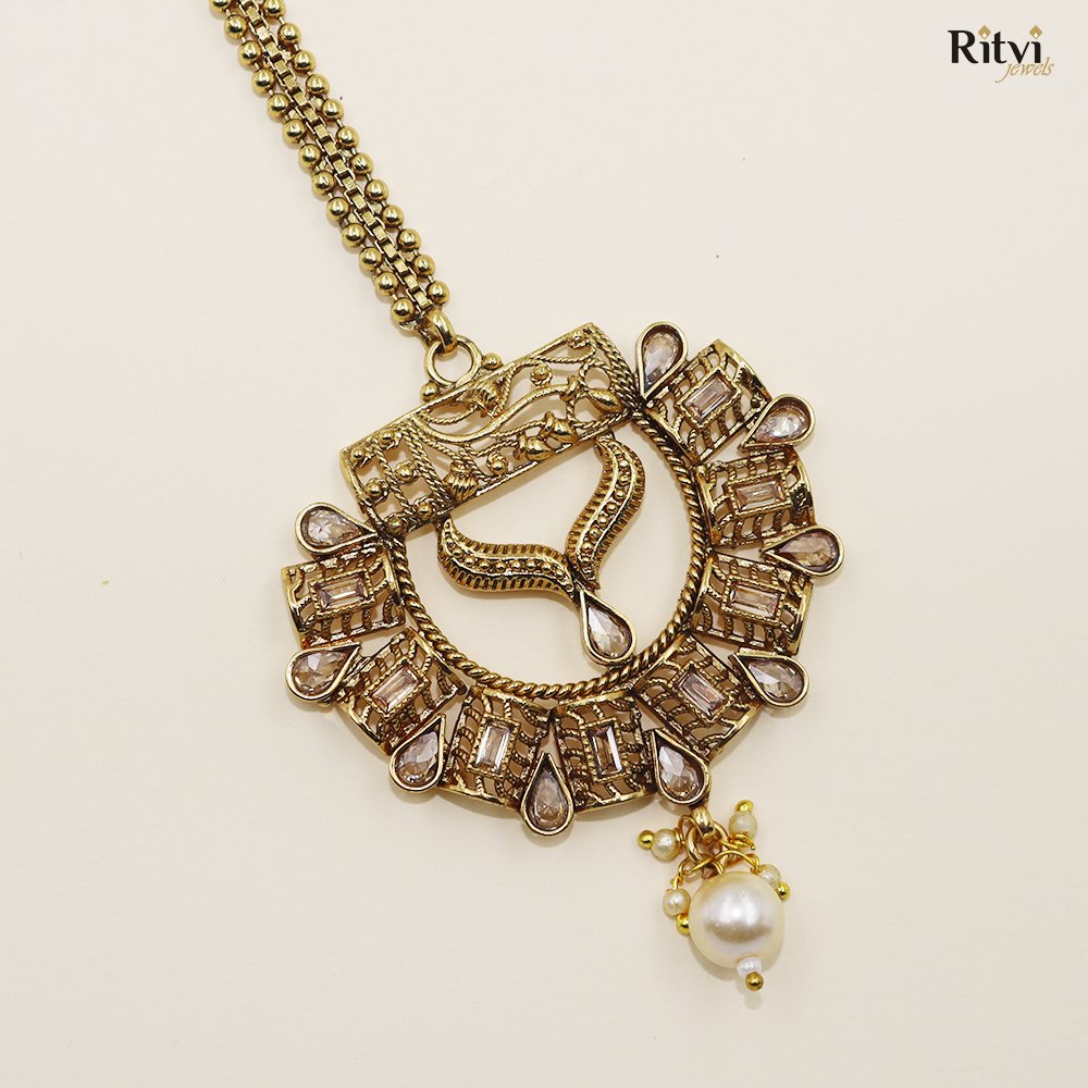 Swastika Rajwada Gold Maang Tikka is a luxurious and traditional bridal accessory crafted in gold, inspired by the opulence of Rajwada royalty. Designed to enhance the bride’s elegance, this maang tikka features intricate detailing and a bold design that complements bridal attire beautifully. Ideal for weddings, it adds a majestic touch, symbolizing heritage and grace on the special day.